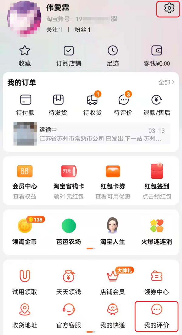对于满足修改会员名功能要求的用户,我们在登录手机端的淘宝后,点击界面底部的【我的淘宝】,然后在点击界面右上角的【设置】小齿轮按钮。