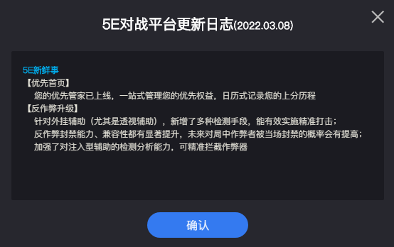 众所周知,无论是电脑软件还是游戏,为了修复各种bug,提升用户体验,软件官方都会定期推出更新。就在2022年3月8日,5E对战平台迎来了更新,想必这次更新,一定会有一些变动,旨在提升玩家操作体验。下面,我们就一同看看5E对战平台在这次更新中,都更了哪些有价值的内容。