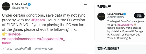 有玩家表示他们丢了10个小时的进度,包括多个已经打通了的boss,装备和关卡。考虑到艾尔登法环中每个boss都非常难打,而重打装备也是一个艰巨的任务,等于这一周的时间都白“受苦”了,万代官方也已经意识到这个问题,发文称在某些情况下,PC版艾尔登法环游戏存档数据可能不会和Steam云存档同步。