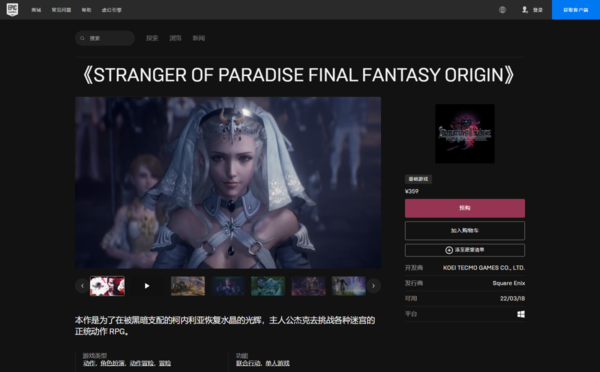 据悉,最终幻想起源游戏是由日本游戏厂商SQUARE?ENIX与KOEI?TECMO旗下的TEAM?NINJA联手打造的动作游戏作品,预计最终幻想起源游戏将于2022年3月18日在PlayStation?5、PlayStation?4、Xbox?Series?X|S、Xbox?One和Epic平台登陆发售。
