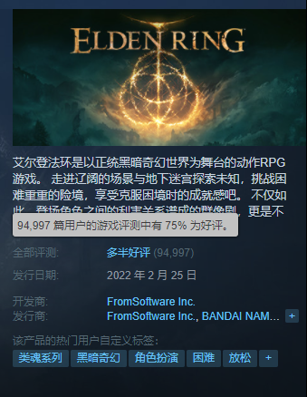 有玩家表示,“除了优化不好以外没有缺点”、“真正的神中神,魂系列的巅峰之作,地图之大内容之多历代作品都难以望其项背,唯一缺点优化太差......算了?太好玩了,没有缺点”近日,共同创始人乔治·R·R·马丁也发表了盛赞。