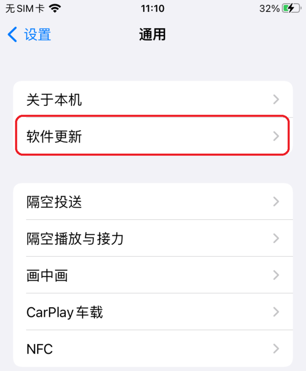2、进入到通用界面后,找到【软件更新】选项,并点击进入。