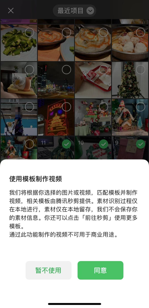 接着软件会弹出【使用模板制作视频】的信息,仔细阅读内容后,点击【同意】按钮。