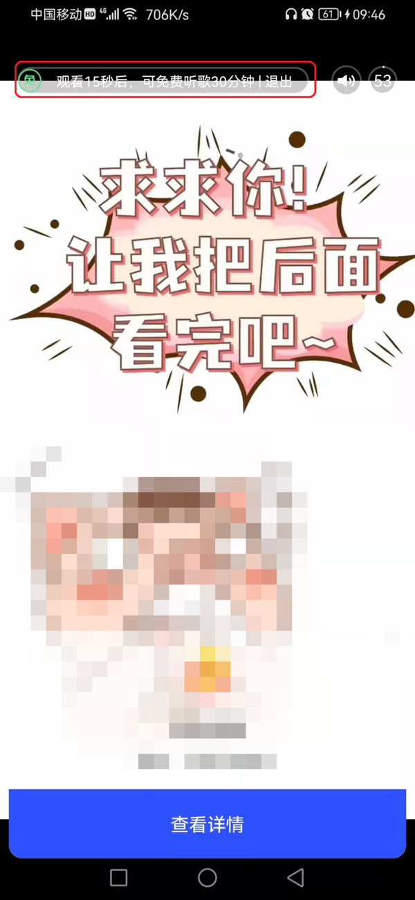 2、接着软件就会进入到视频广告的界面当中了,此时我们可以观看15秒的视频广告。