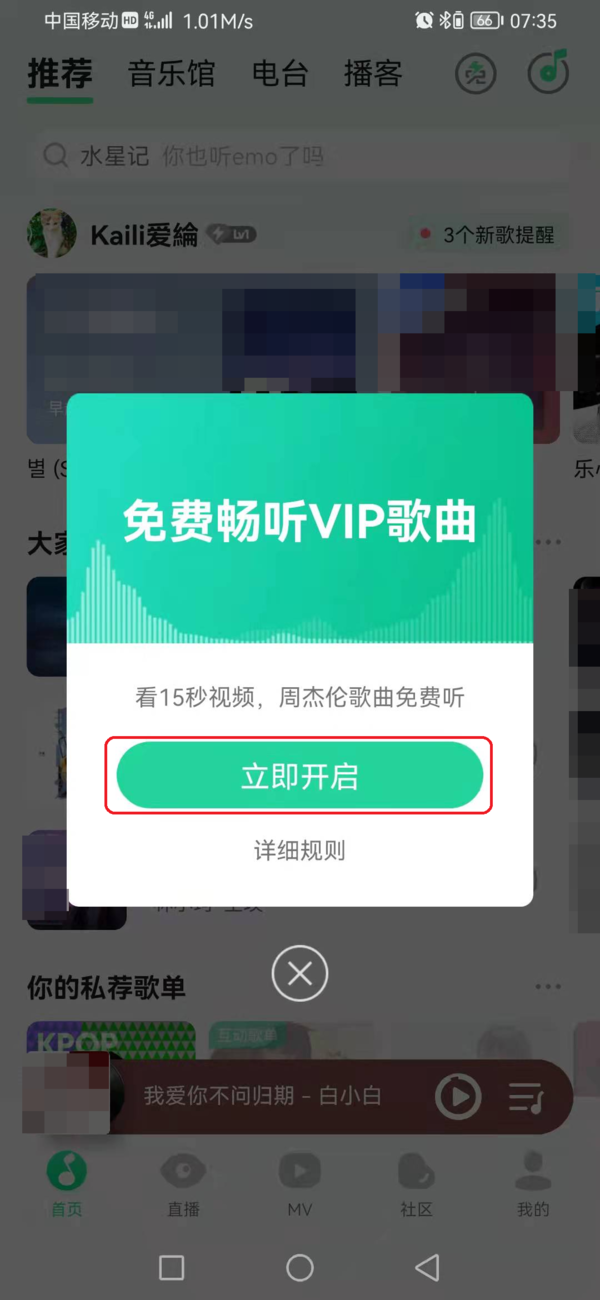 QQ音乐内测的看视频广告免费听歌模式怎么使用