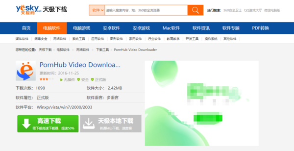 PornHub,作为世界上比较知名的视频资源站,其中包含许多种类的视频,只有你想不到,没有它没有的视频。就在近些年,一些用户还把国内的考研网课发布到Pornhub上,因此有一段时间该站也被国内用户戏称为“考研资料网”。而且“考研资料网”有着自己的下载器,叫PornHub?Video?Downloader。今天,天极小编就给大家讲讲PornHub?Video?Downloader的下载渠道以及安装方式。