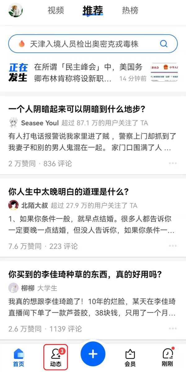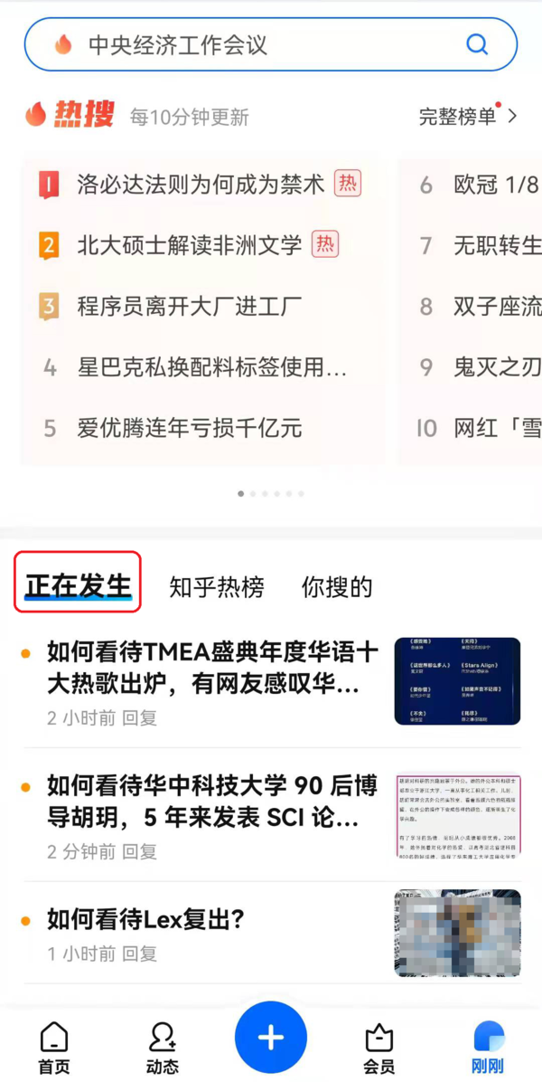 知乎8.0最新版本在首页新增了【正在发生】内容模块,通过运营和算法的手段,来强化时效性内容的展示与整合,因为很多朋友都喜欢看热点内容。