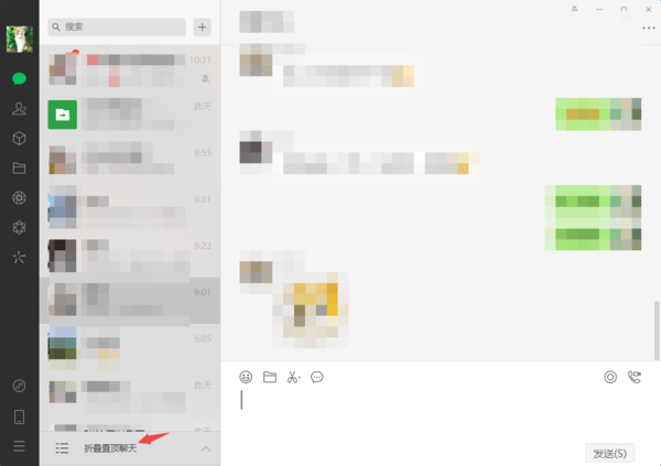 经过小编的实际使用发现,当我们置顶的聊天达到10个的时候,我们在微信聊天界面的左下角位置,便可以看到【折叠置顶聊天】的功能。