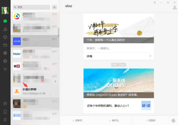 而除了折叠群聊功能外,Windows版本的微信与之前mac版的微信一样,也支持将免打扰的群收进折叠的群聊当中。