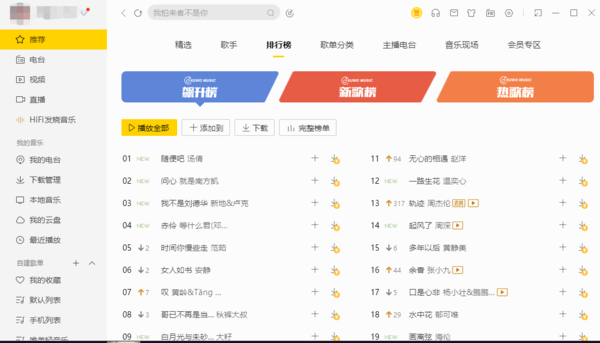 电脑端酷我音乐的排行榜都有哪些类别