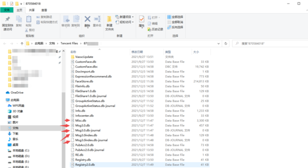 4、最后我们就可以在电脑所打开的文件夹当中,看到一堆文件了,而在众多的文件夹当中,以MSG开头的文件就是QQ的聊天记录文件,只不过我们是无法直接点击文件进行打开的。