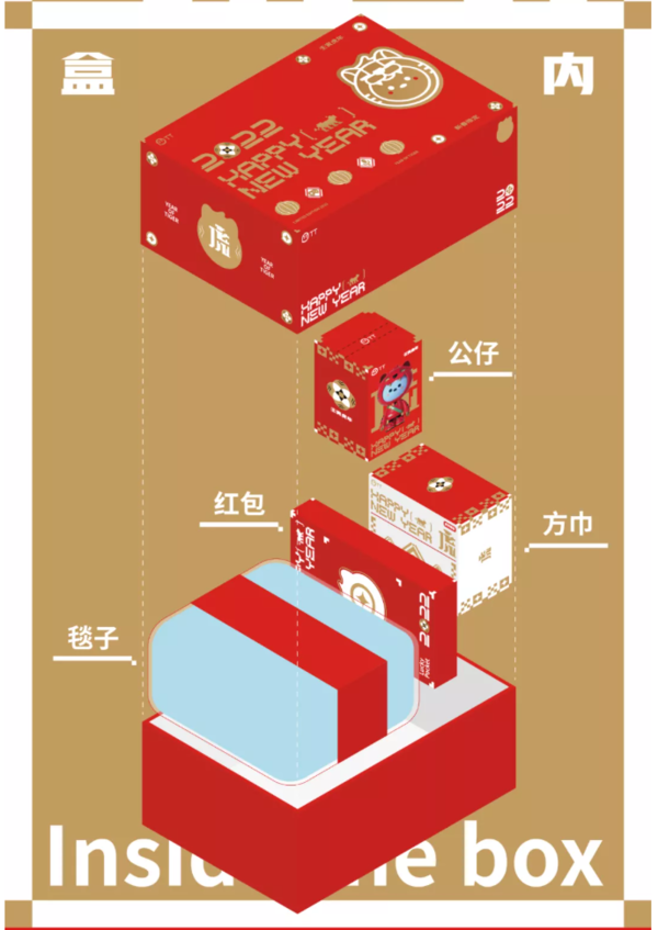 在礼物盒内,除了红包之外,还有VIP专属的限定周边,一款高9厘米的红金限定款公仔,一条棉麻的方巾以及一条法兰绒的毛毯,可谓诚意满满。