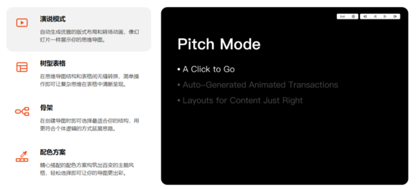 2、商务演示。在XMind中进行演示,可以为用户提供纵向深入和横向扩展两个维度的选择。