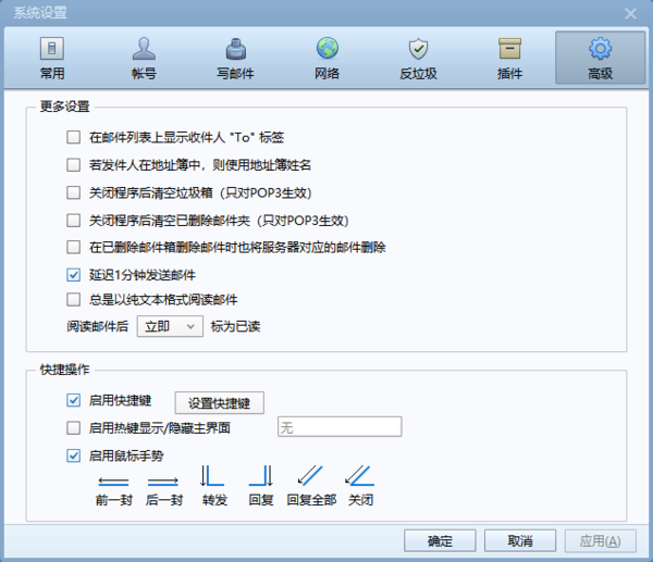 方案二:如果我们以后想撤回即时发送的邮件,我们可以在设置界面的高级设置中,找到其中一个选项“延迟1分钟发送邮件”,我们只有将这个选项开启后才可以撤回即时发送的邮件。