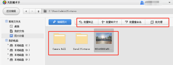 点击页面左上角的“浏览图片”功能,跳转到图片选择页面后,找到需要批量处理的图片文件夹。选中图片之后,在窗口上方,选择批量处理的功能内容,比如:批量转正、批量转尺寸、批量重命名等。选择好对应的处理功能后,按提示输入要求修改就行了。