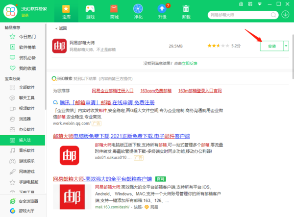 除了通过官网下载网易邮箱大师,我们还可以使用360软件管家下载网易邮箱大师。