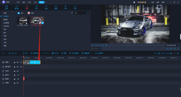 2、将这些图片以自己喜欢的顺序拖入到下方进度条“视频”那一项中,这样图片视频的雏形就完成了。顺便提一下,如果不慎将图片顺序放错了也没关系,可以在进度条中将图片更换位置。