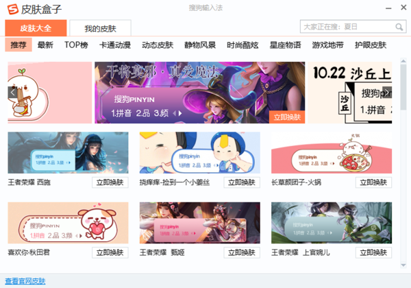 我们使用搜狗拼音输入法,在享受输入法带来的便利同时,也对搜狗输入法的一些用法存在疑问,比如我们该如何切换简繁体、如何使用字符画、常用皮肤推荐之类的。今天,就由天极小编给大家分享一下电脑版搜狗拼音输入法有哪些皮肤值得推荐,并且简单介绍一下更换皮肤的方法。