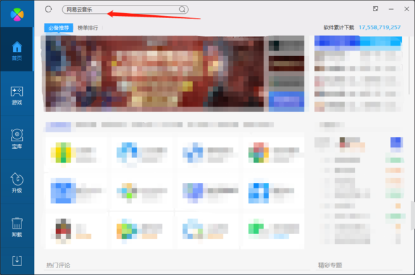 在软件管理的上方有搜索栏,输入网易云音乐,进行搜索。