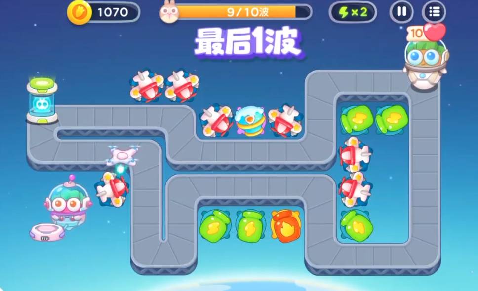 6、有足够萝卜币的话,可以在沿路再补充几个玩具飞机,加速消灭速度。