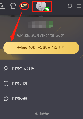 ③登录账号后,在头像的左边有“VIP”字样,鼠标划上去就会弹出腾讯视频会员的小框。