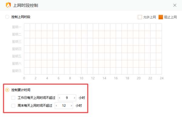 火绒安全软件控制上网时段方法二?累积上网时间进行控制