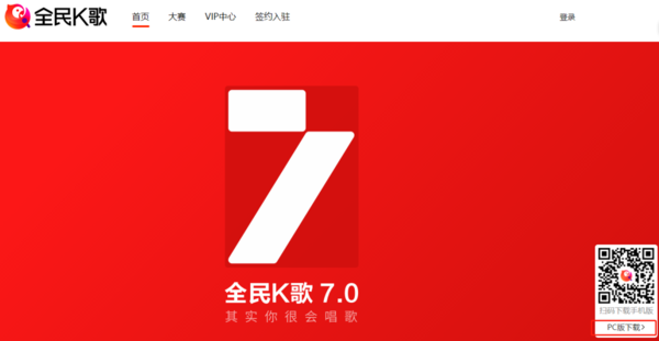 1、进入全民k歌官网,到达主页面,在主页面右下方有个二维码,二维码下方有个“PC版下载”按钮,点击该按钮,即可传送到该页面下方全民k歌下载处。