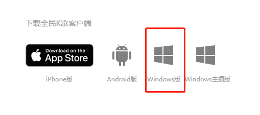 2、到达下载处,可以看到几个选项,对于电脑版全民k歌的下载,选择第三个“Windows版”,点击该按钮后即可进行下载。