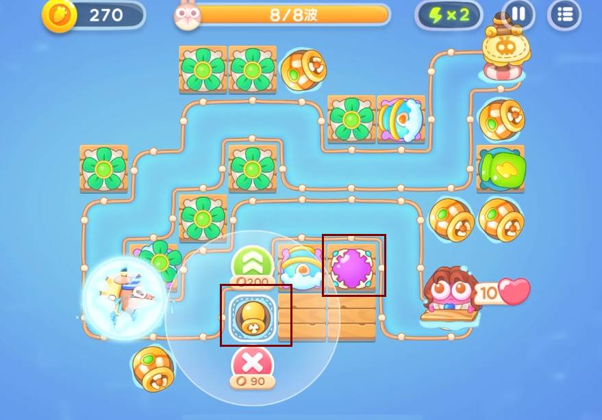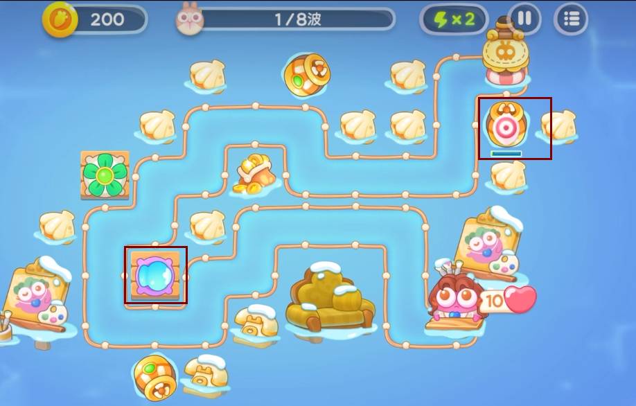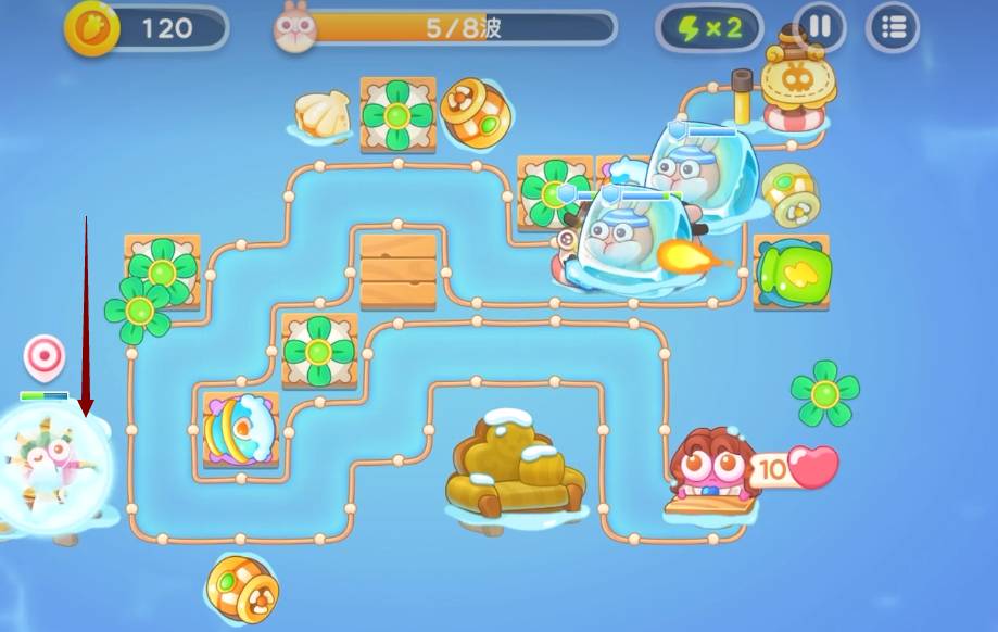 6、消除怪后获得足够萝卜币,可以在沿路种上魔法球和鱼雷等攻击道具。