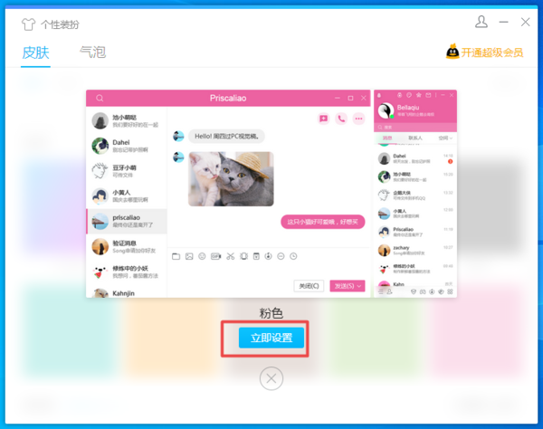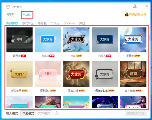 第六步,而在QQ的个性装备窗口当中,除了可以设置皮肤的颜色外,我们还可以设置聊天时的气泡样式,根据喜好来进行选择即可。