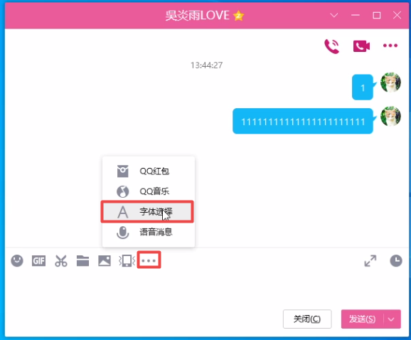 第一步,打开QQ与好友的聊天窗口,然后点击界面底部的【...】三个点图标,接着在弹出的选项中,选择【字体选择】选项。