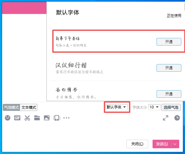 第三步,接着,软件会弹出一些字体,选择自己喜欢的字体即可。这里我们更改的是气泡模式的聊天字体颜色。