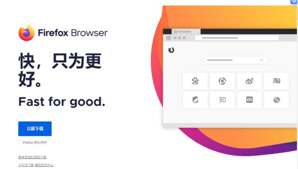 Mozilla?Firefox火狐浏览器是一个由Mozilla开发的自由及开放源代码的网页浏览器,其使用的Gecko排版引擎,支持多种主流操作系统,如:Windows、macOS以及Linux等。同时火狐浏览器具有体积小速度快,标签式阅读等特点,让用户上网冲浪能更快,且还能有效的阻止弹出式窗口。