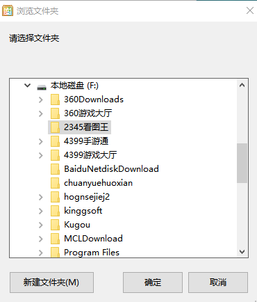 步骤二:在弹出窗口中,选择想要安装的位置,比如说F盘中的2345看图王文件夹,选择完之后,点击“确定”就会回到安装向导界面。