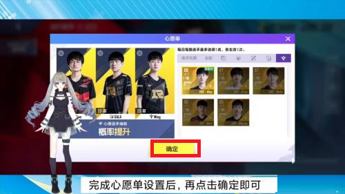 第四步:选择需要的选手并点击,完成心愿单设置后,再点击确定即可。
