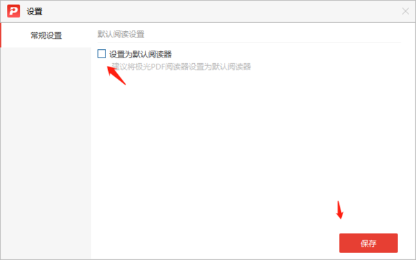第五步,再点击窗口右下角的【保存】按钮即可将极光PDF阅读器设置为默认阅读器。