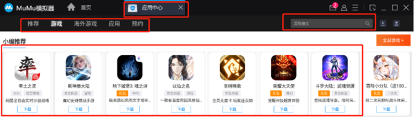 打开网易MuMu手游助手后,点击页面左下方的打开模拟器字样,就能跳转到网易MuMu模拟器界面。在MuMu模拟器主页中,点击应用中心,在应用中心就能按照分类或者是游戏名来查找下载游戏。下载完的游戏,会自动添加到MuMu模拟器主页上,方便用户查找和使用。
