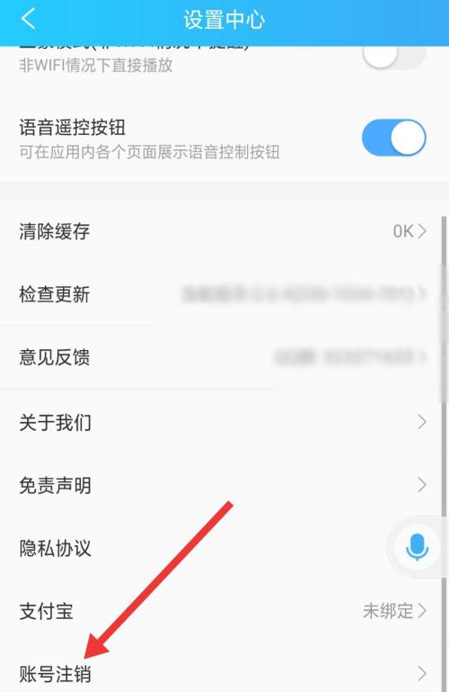 第二步:进入到设置界面后,再点击箭头所指的账号注销选项。