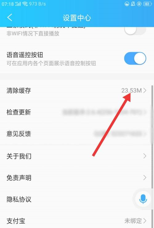 第三步:进入到设置界面后,我们再点击清除缓存选项。