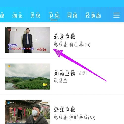 第三步:选择一个卫视频道进入(如图所示)。