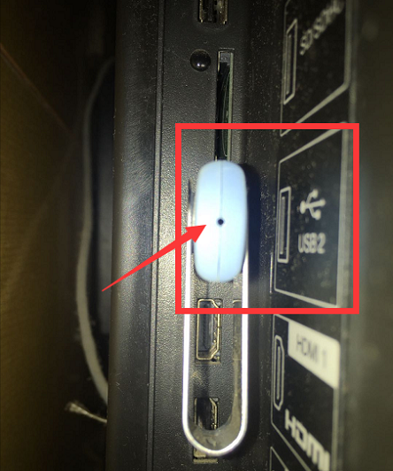 第二步:打开智能电视,将U盘插入电视机USB接口处,注意接口,避免插反(如图所示)。
