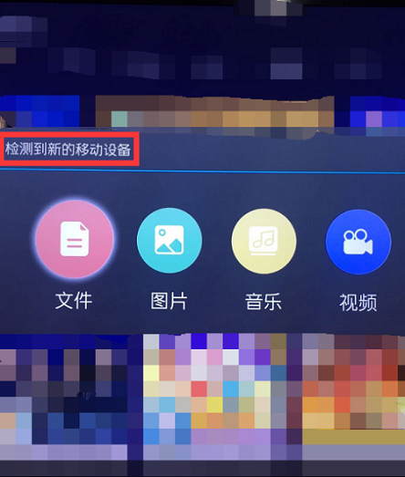 第三步:U盘插入USB连接处后,电视会弹出【检测到新的移动设备】(如图所示)。