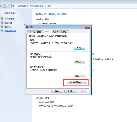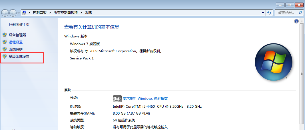 第一步:我的电脑---控制面板---高级系统设置。