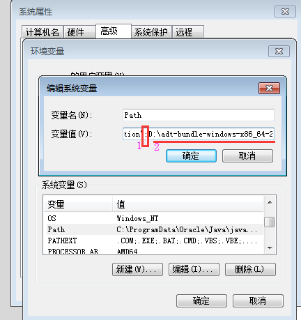 第四步:在系统变量中找到PATH,编辑一下,在Path的变量值中加:%Android%
