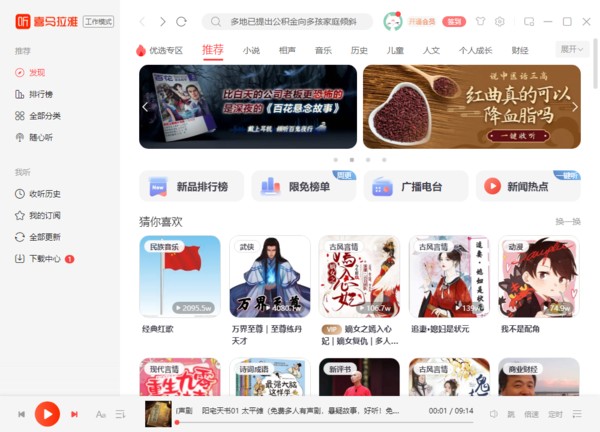 财神爷站小编个人认为,喜马拉雅的mini模式,更加注重“小巧与快捷”,更小的窗口让我们在使用其他电脑软件的同时,轻松使用喜马拉雅,快捷则是喜马拉雅mini模式在小巧的基础上,保留了实用功能,让用户操作更加快捷。