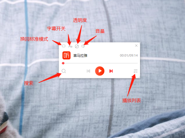 2、字幕模式。该功能按钮也在mini模式左上角,由【Aa】组成,反复点击可实现字幕的开/关。