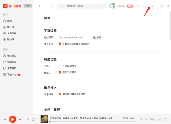 1、换回标准模式。该功能位于喜马拉雅mini模式左上角,我们点击该按钮,即可将喜马拉雅切换回标准模式。