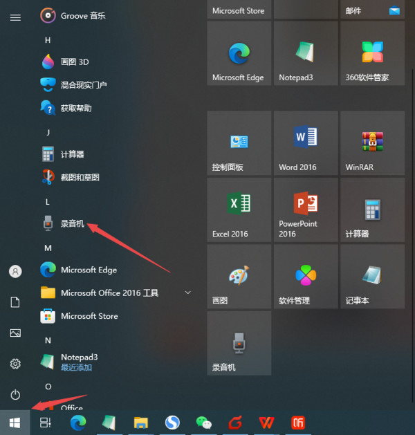 首先,点击电脑屏幕左下角的【开始】菜单按钮,然后找到【录音机】功能并点击它。