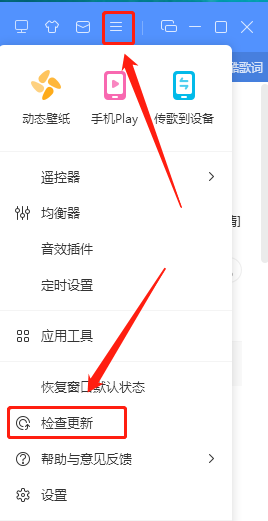 方法一:对于已经在电脑上安装有酷狗音乐的朋友,在打开酷狗音乐之后,点击页面右上方的三根横线图标。在出现的主菜单下拉选项窗口中,选择检测更新,软件就会自动检测更新到最新版了。
