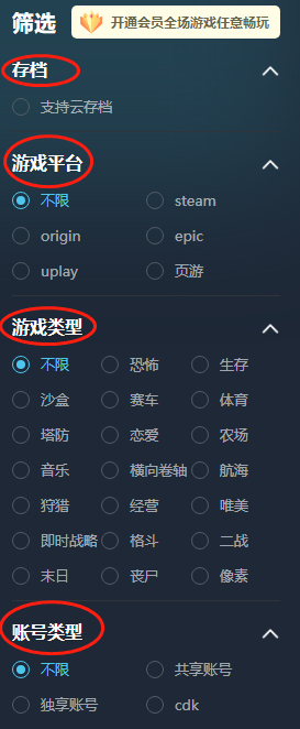 1、是否支持云存档。一般情况,部分单机游戏是支持云存档的,玩家如果想享受该服务,即可开启筛选。